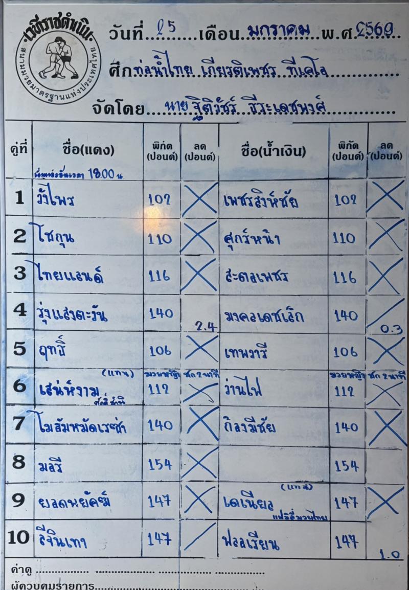 | # ศึกมวยดีวิถีไทย 25/01/2569 |