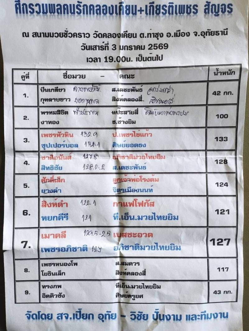 | # ศึกมวยไทยเกียรติเพชร 03/01/2569 |